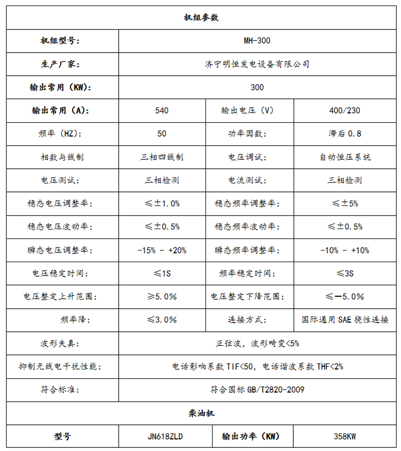 300KW濰柴斯太爾系列柴油發(fā)電機組技術(shù)參數(shù)